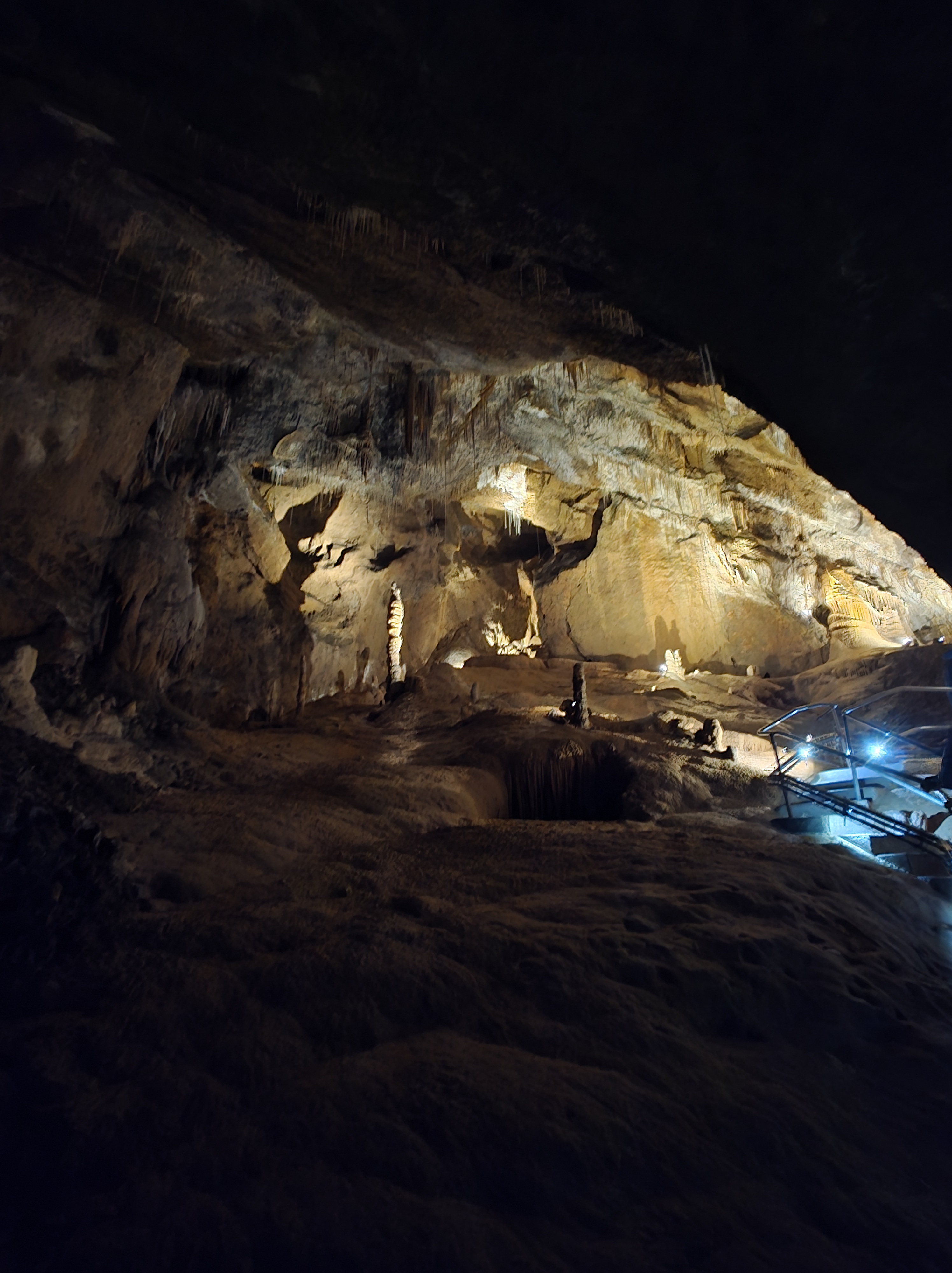 Starting in the same chamber, we quickly branched off onto a different pathway that took us higher into the cave system. This section was a little more physically demanding, involving more steps and some steeper sections, but the surface remained solid and safe. A moderate level of fitness is recommended for this tour.